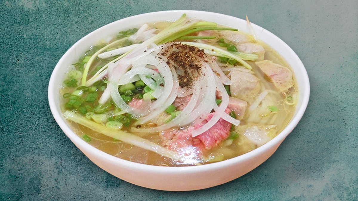 Sliced beef, Pork Roll & Lemon Grass. Served with a free 0,33 l soda.