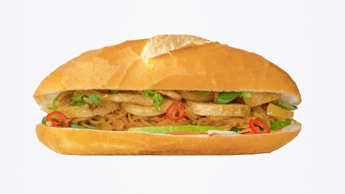 Rice noodles, mushroom, tofu, vegan sausage. Served with a free 0,33 l soda.