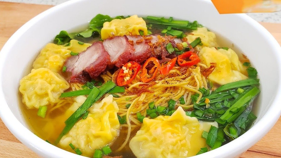 Egg noodle soup with wontons & duck. Served with a free 0,33 l soda.