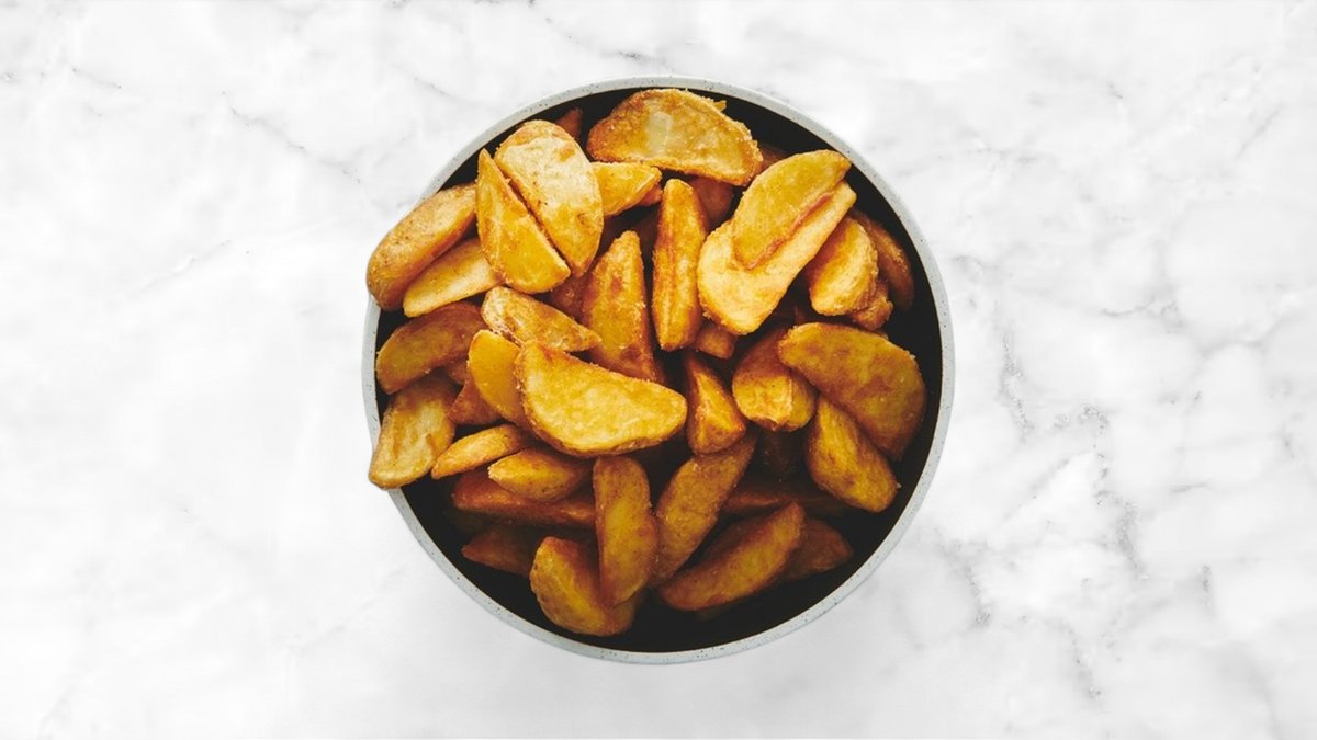 Serveres med pommes frites.
