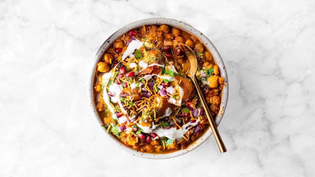 Oplev en fest af smagsnuancer med vores Samosa Chaat! Denne populære ret præsenterer sprøde, gyldne samosaer, der er toppet med krydret kikærtemix, cremet yoghurt, og en blanding af tangy chutneys. Drysset med friske krydderurter og sprøde sev, er hver bid en perfekt balance mellem sprødhed og blødhed, krydret og sødme. Ideel som en lækker forret eller en snack, vores Samosa Chaat vil helt sikkert tilfredsstille dine cravings!