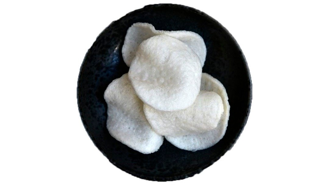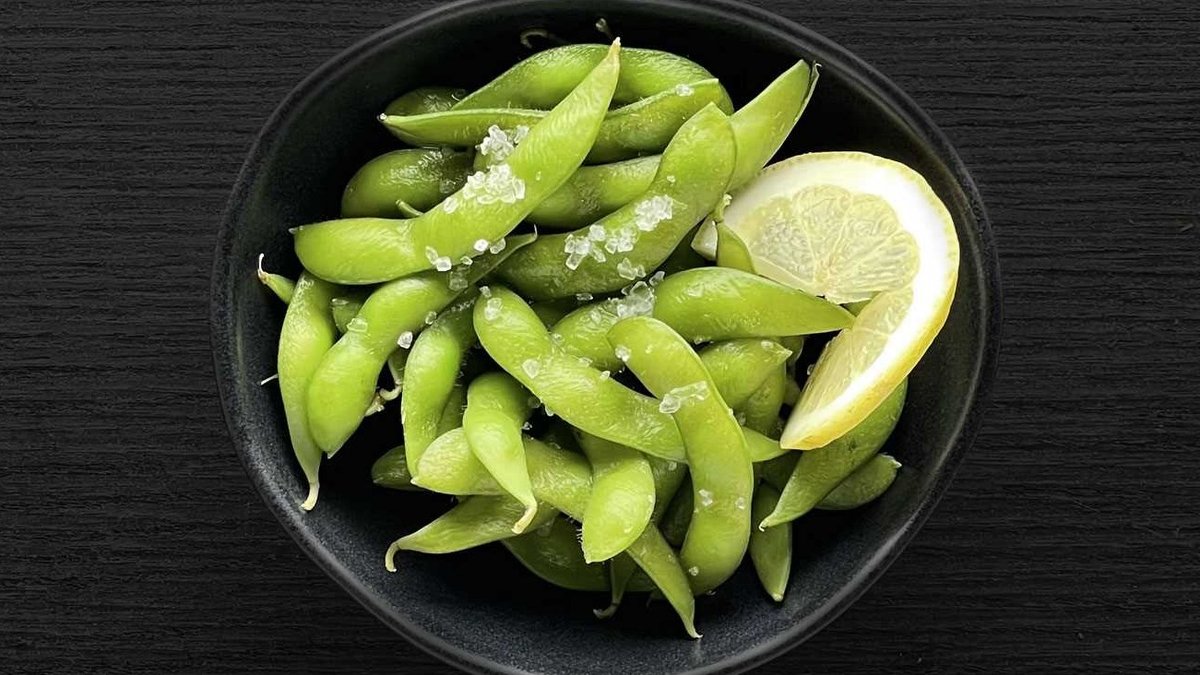 Friterede rejer, edamame, gulerod, mango, spidskål, tangsalat, tang, seasam og én valgfri dressing på en bund af ris.