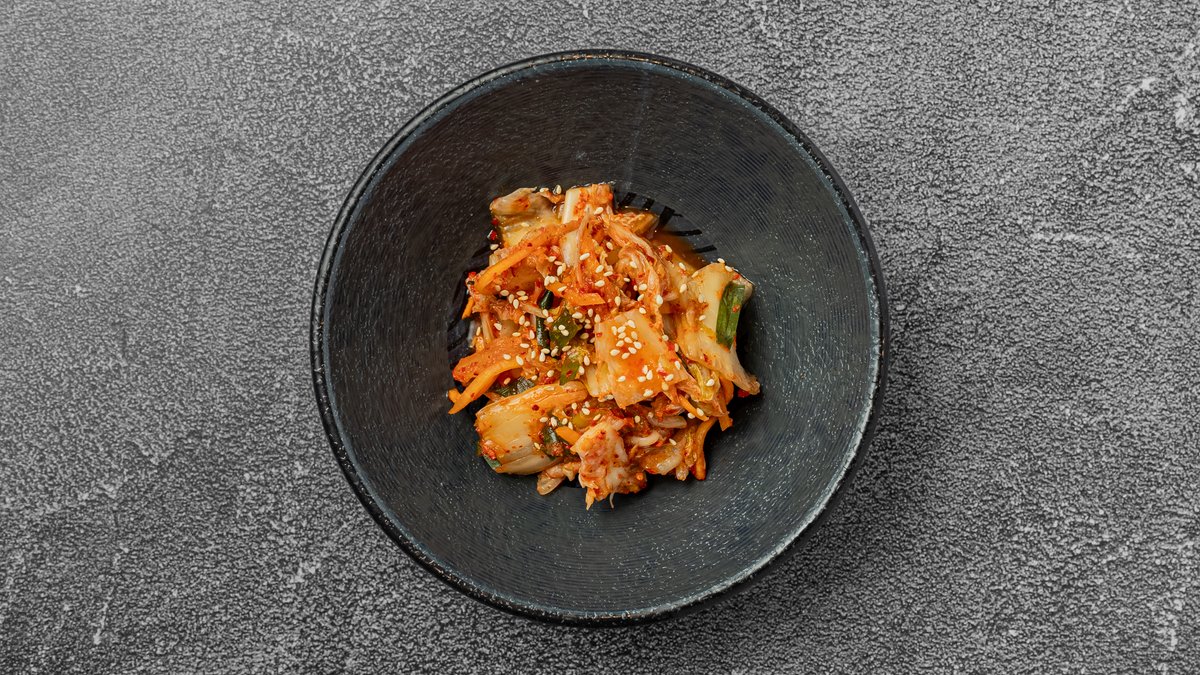 Traditionelt koreansk fermenteret kål, syrligt og let stærk.