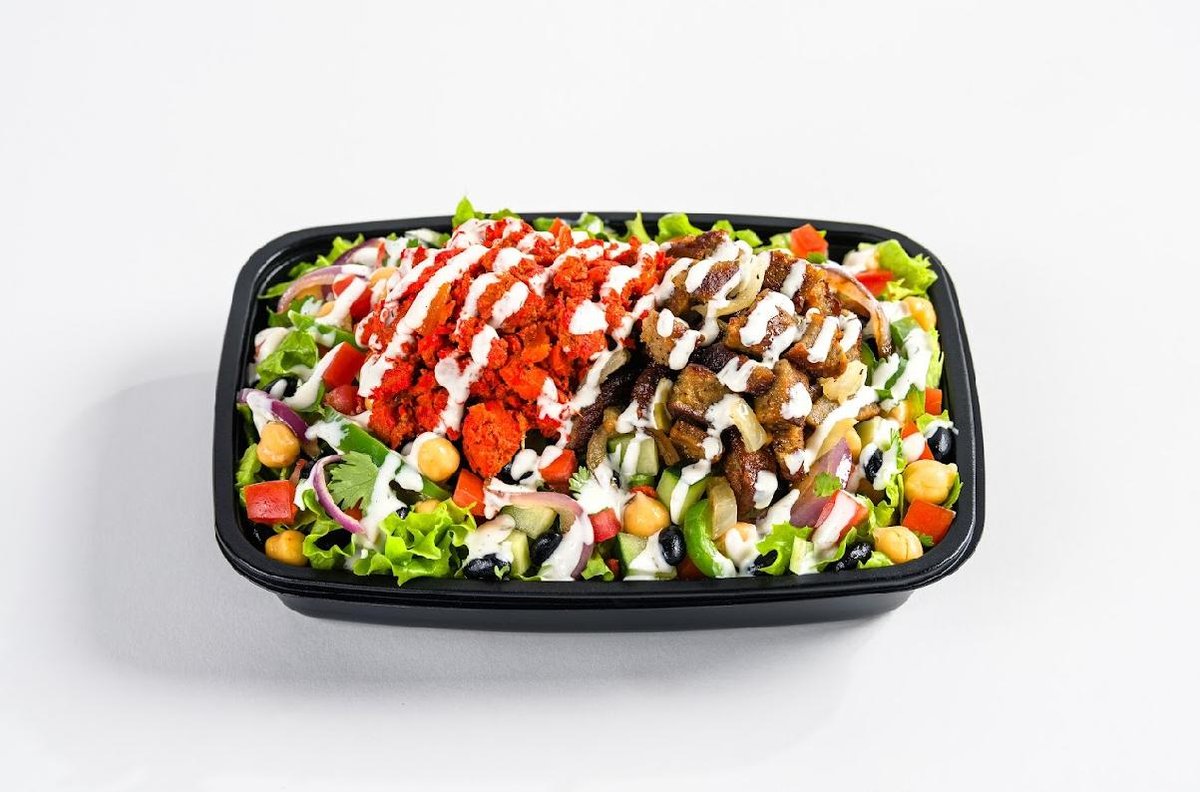 Salat af valgfri fyld, valgfri protein og valgfri sauce.