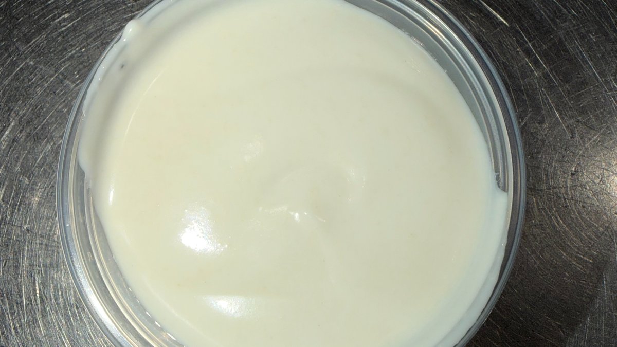Drænet yoghurtdressing med agurk og hvidløg. Serves med pitabrød.