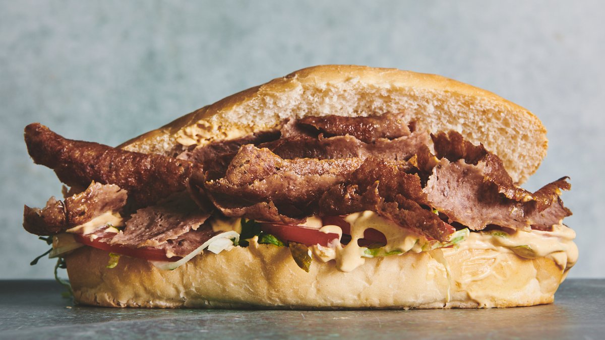 Lunt tyrkisk brød med fyld af valgfri protein, salat, tomat, løg, agurk og dressing.