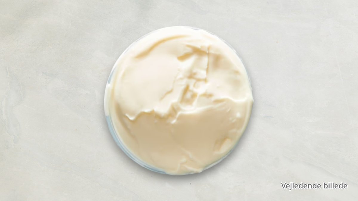 Serveret med pommes frites, salatmayonnaise og 0,33 l sodavand.