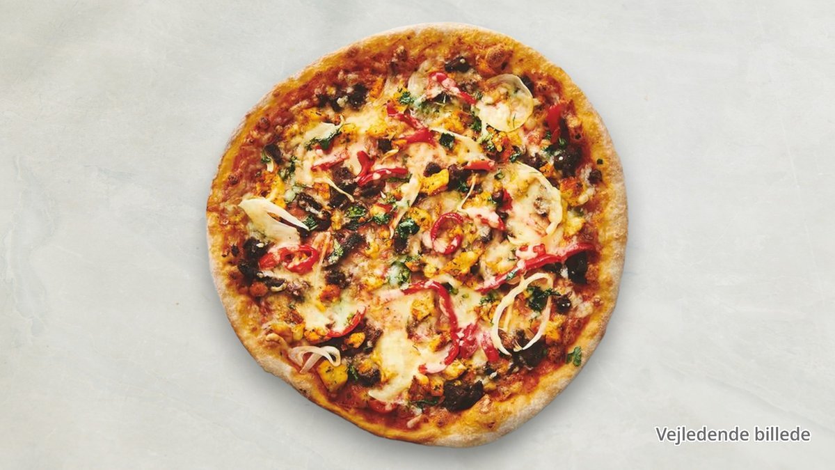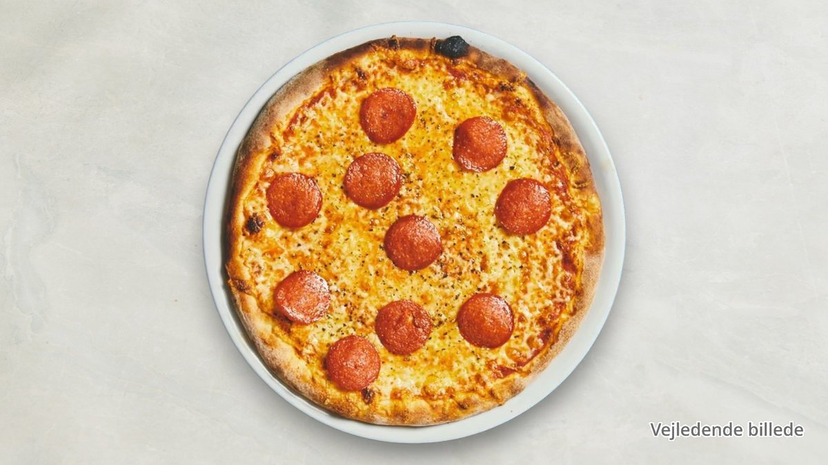 Alle pizzaer er med ost og tomat. (Skinke er kalkunskinke – bacon & pepperoni er oksekød)