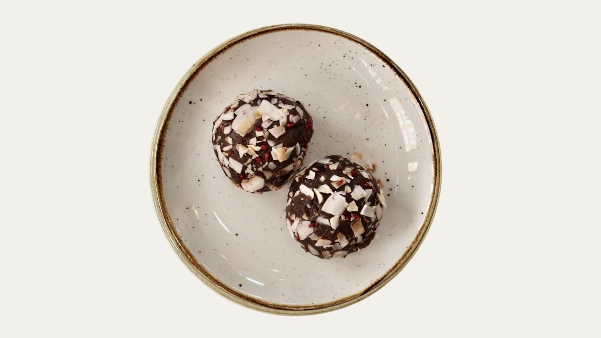 Økologisk kakao, dadler, kokosolie, gojibær og paranødder.