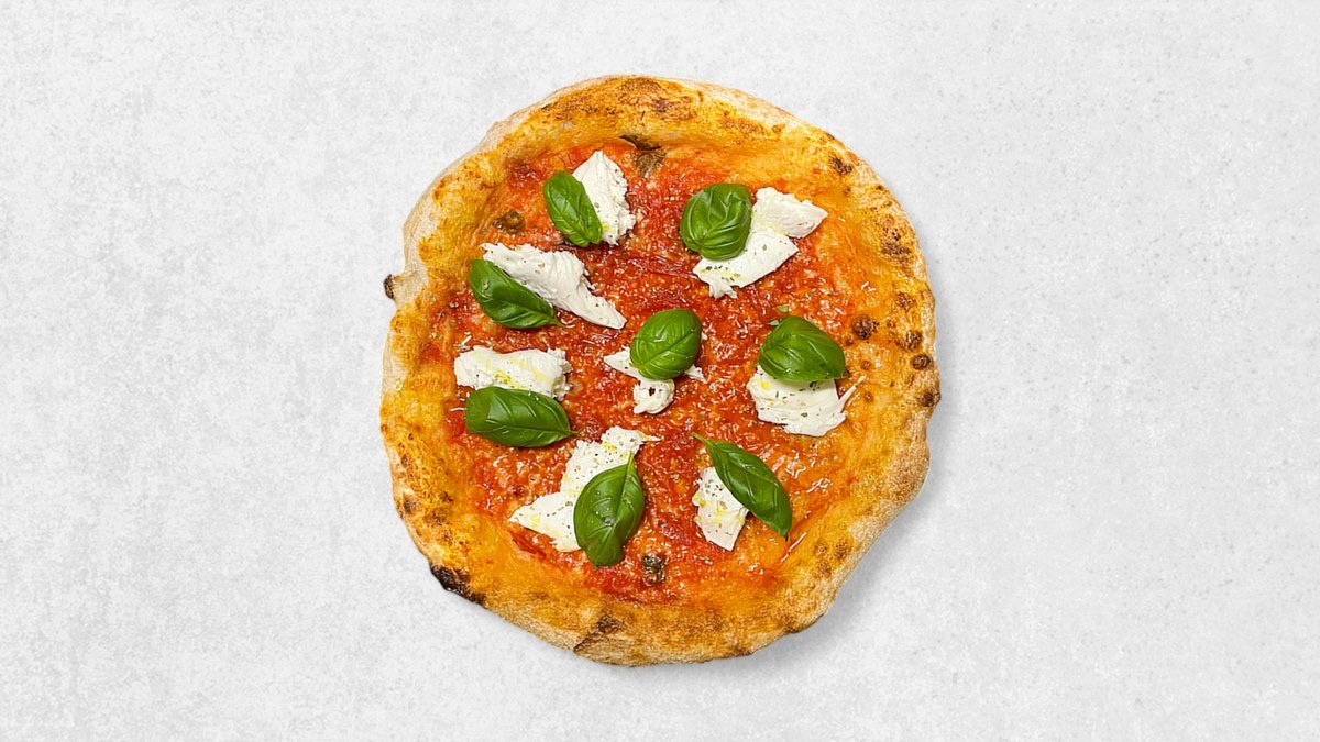 Hjemmelavet Tomatsauce, Mozzarella ost, koldpresset jomfru-olivenolie og frisk basilikum.