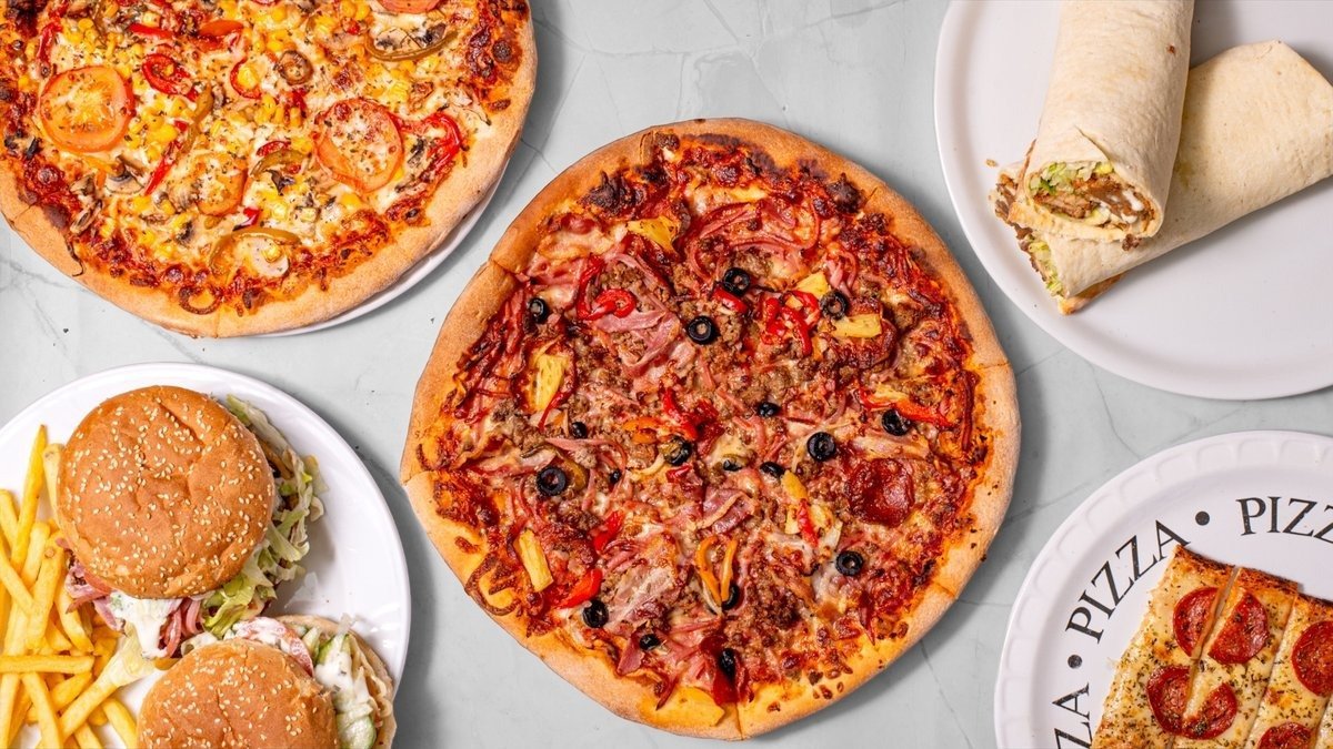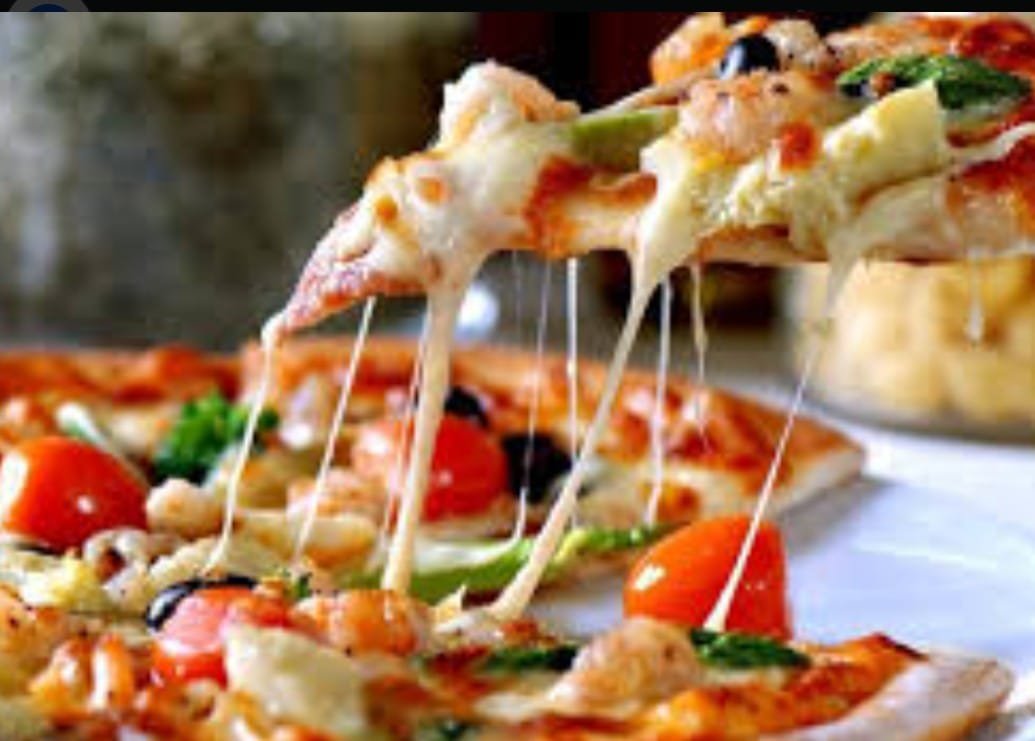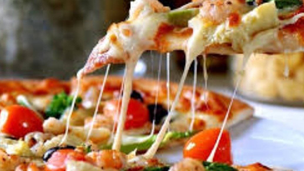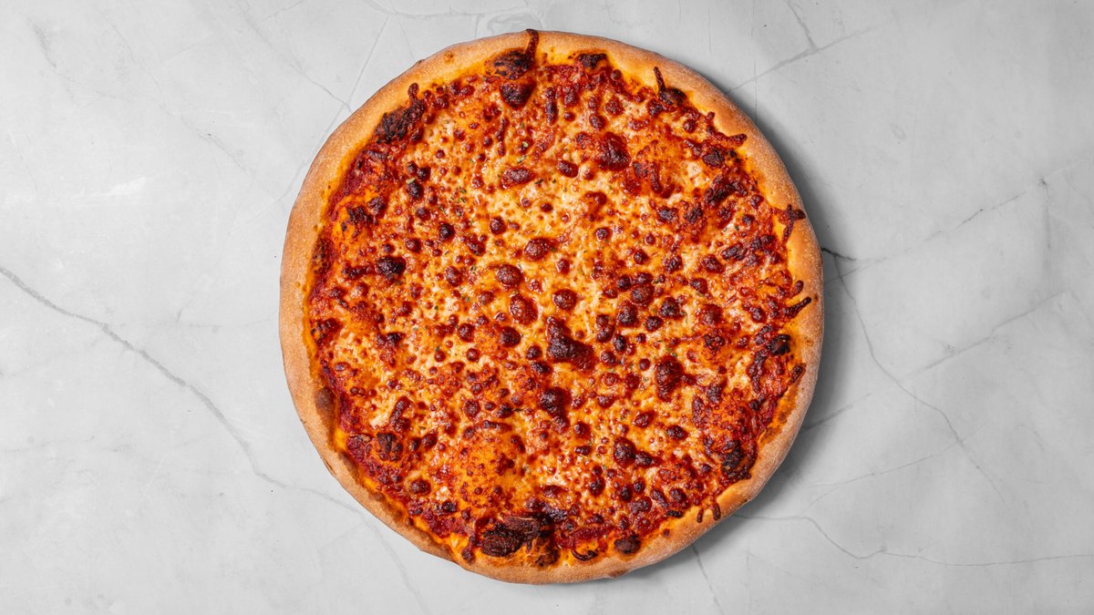 New York–style pizza is a pizza made with a characteristically large hand-tossed thin crust, often sold in wide slices to go. The crust is thick and crisp only along its edge, yet soft, thin, and pliable enough beneath its toppings to be folded to eat.