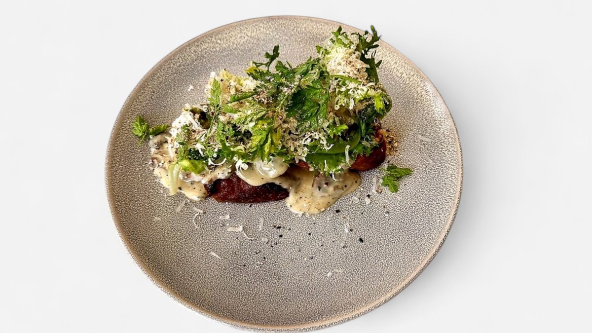 Fanø okse - madagaskar pebermayo jordskokkechips - syltede perleløg - estragonstøv