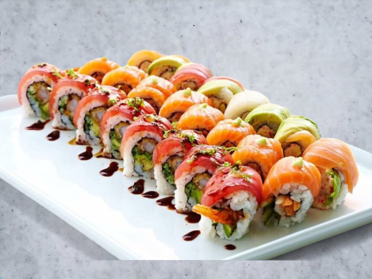 Toppet Uramaki: 8 x New York 8 x Rainbow 8 x Hawaii