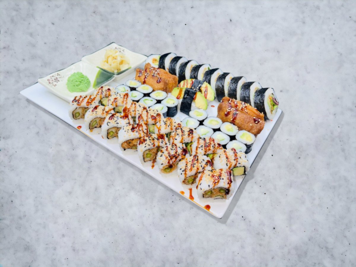 Nigiri: 4 x Tofu 4 x Laks 4 x Tun 4 x Hvidfisk 4 x Rejer 4 x Ål Inside Out: 8 x Spicy Laks 8 x Rejer Tempura 8 x Kylling Tempura 8 x Spicy Tun