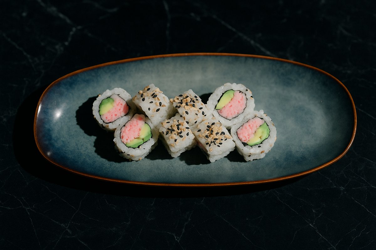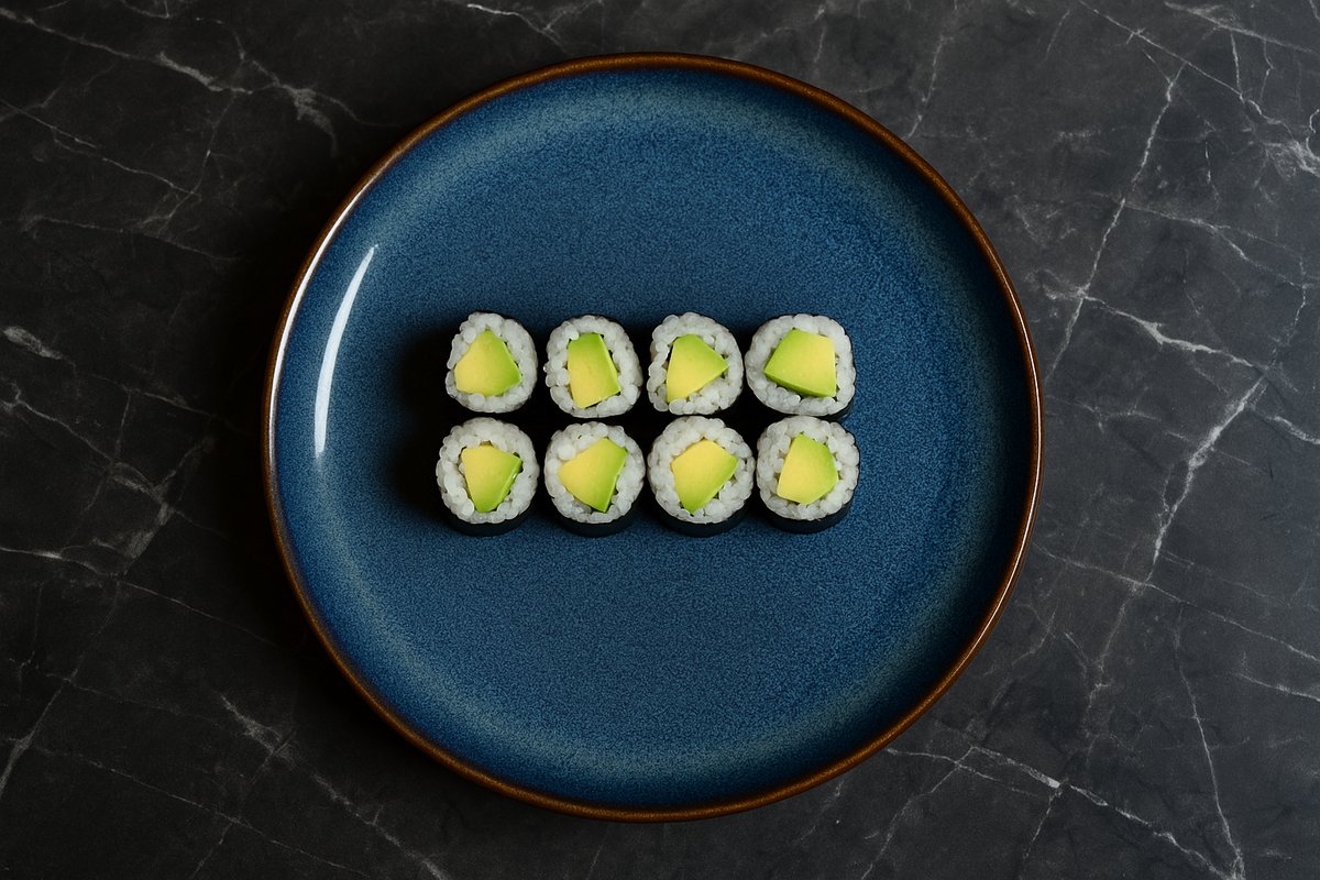 Hosomaki: 4 x Agurk 4 x Avocado Nigiri: 2 x Laks