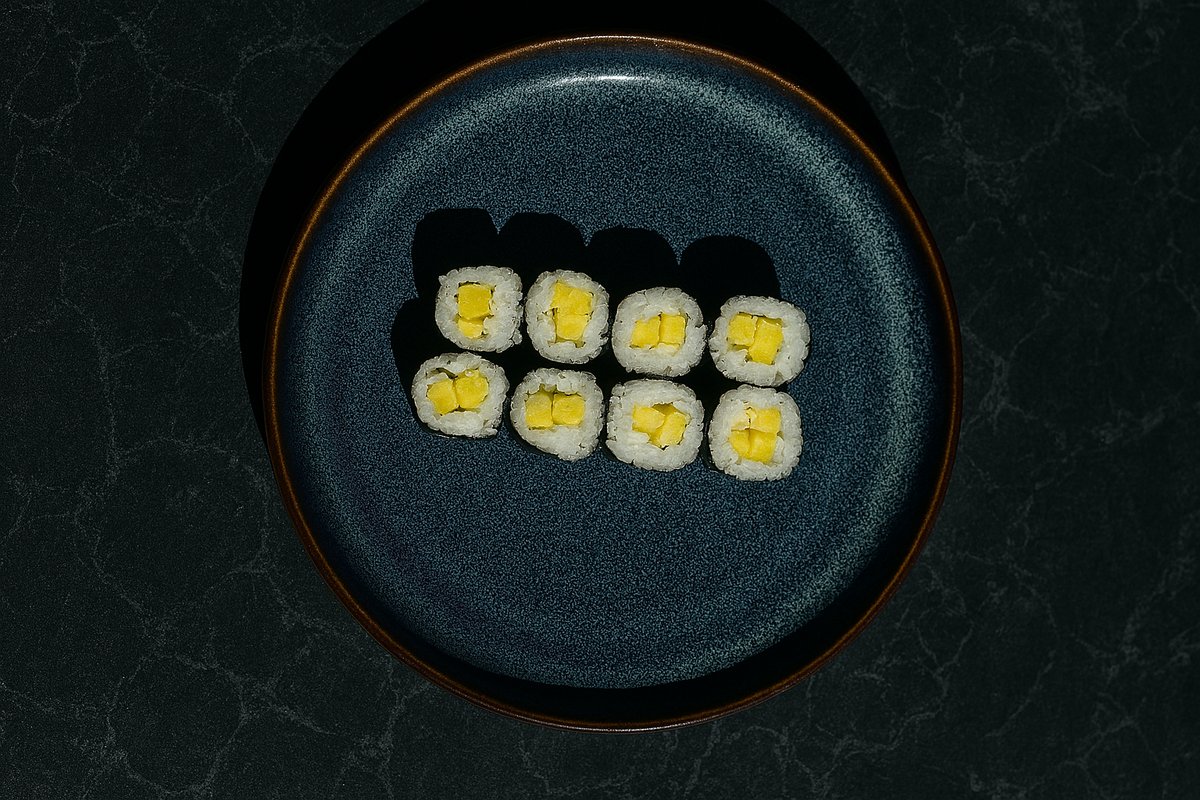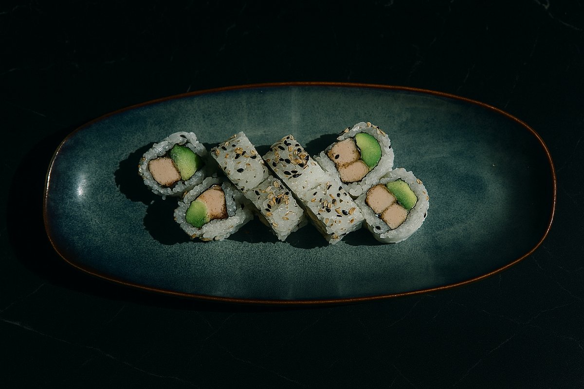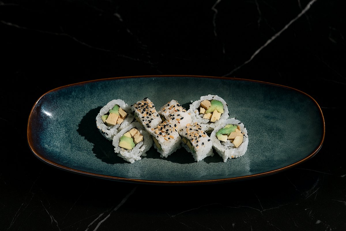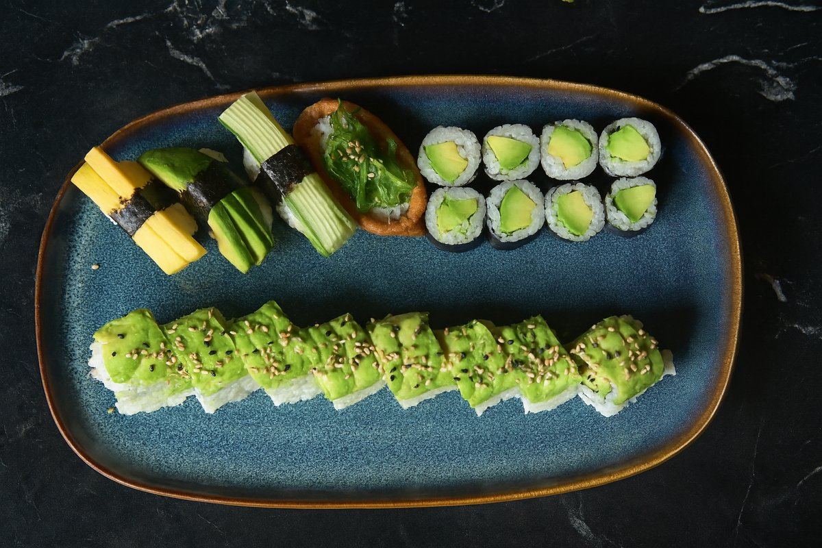 Uramaki: 8 x Veggie Roll Hosomaki: 8 x Avocado Nigiri: 1 x Agurk 1 x Avocado 1 x Tofu 1 x Mango
