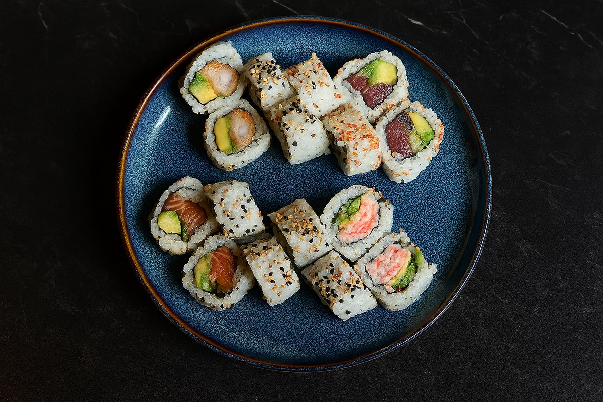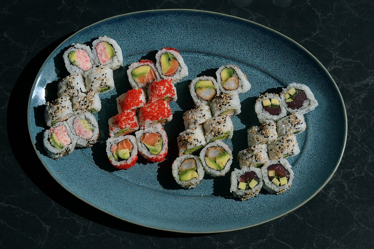Uramaki: 4 x Salmon 4 x Tun 4 x California 4 x Crispy Ebi