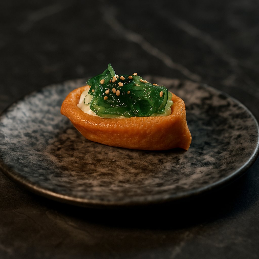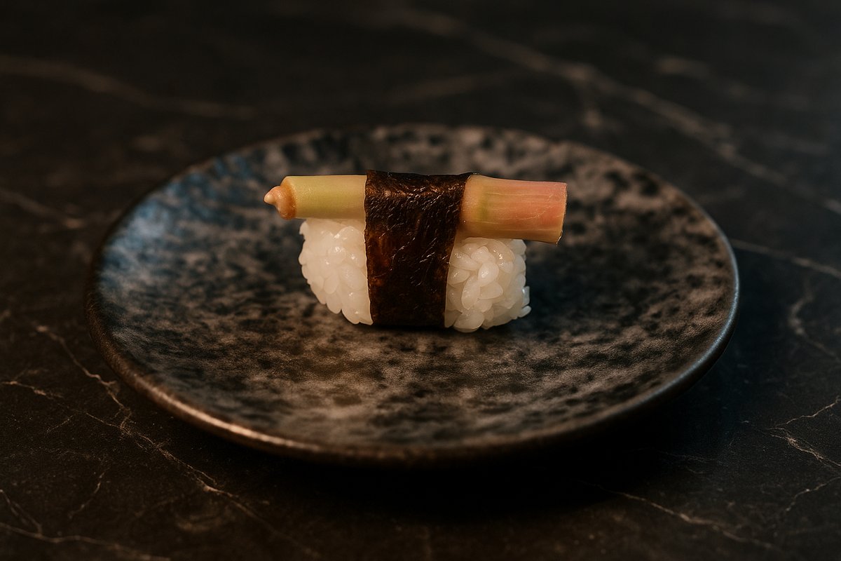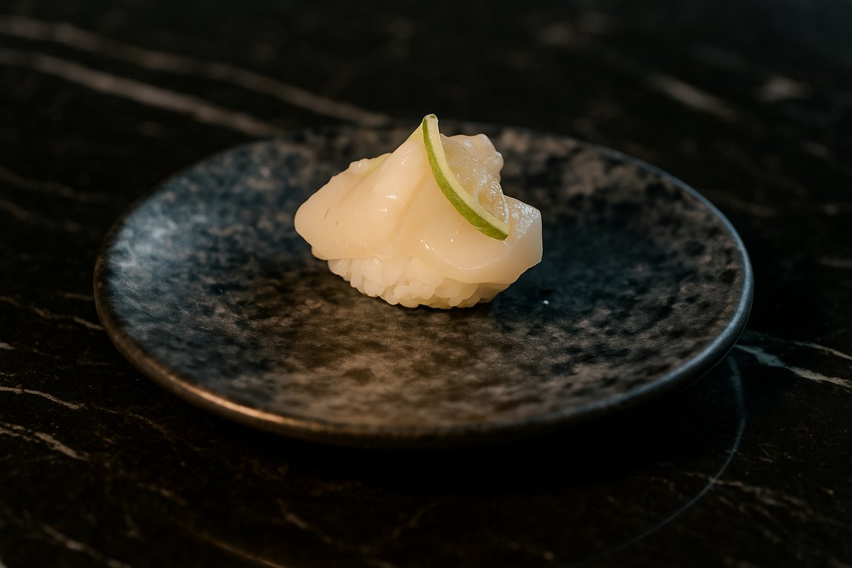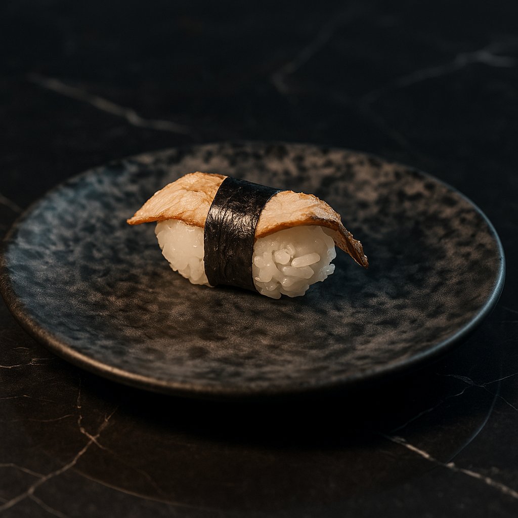 Bolle af ris toppet med rå fisk eller grøntsager, kommer i par af 2 stk.