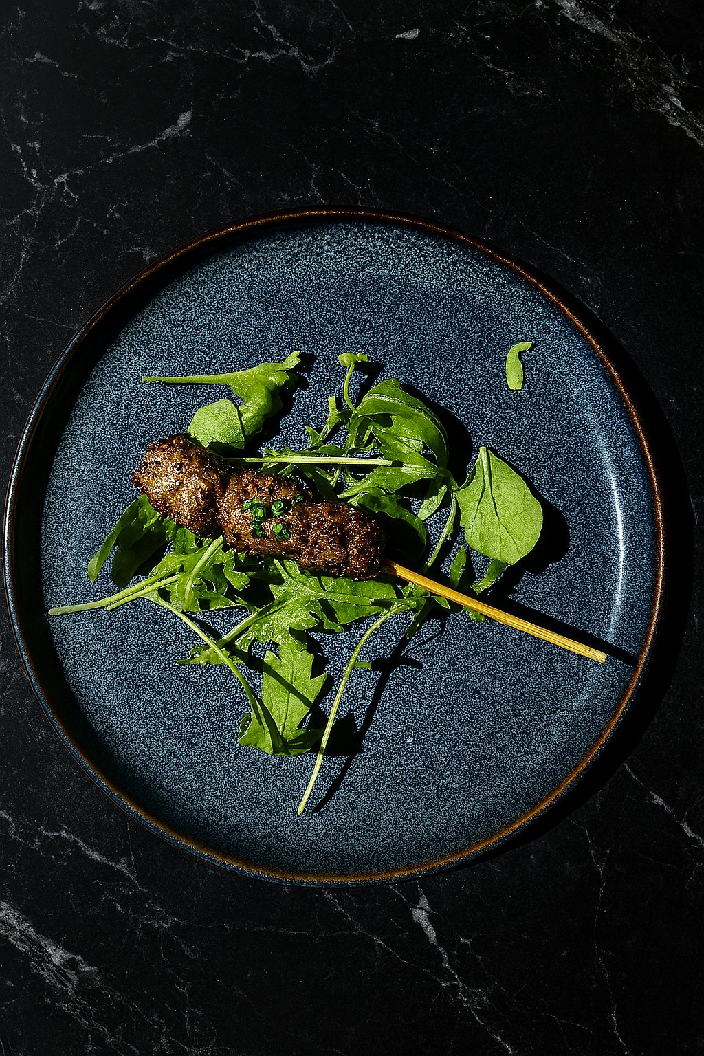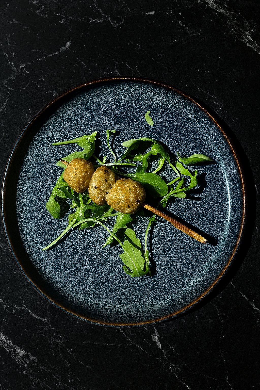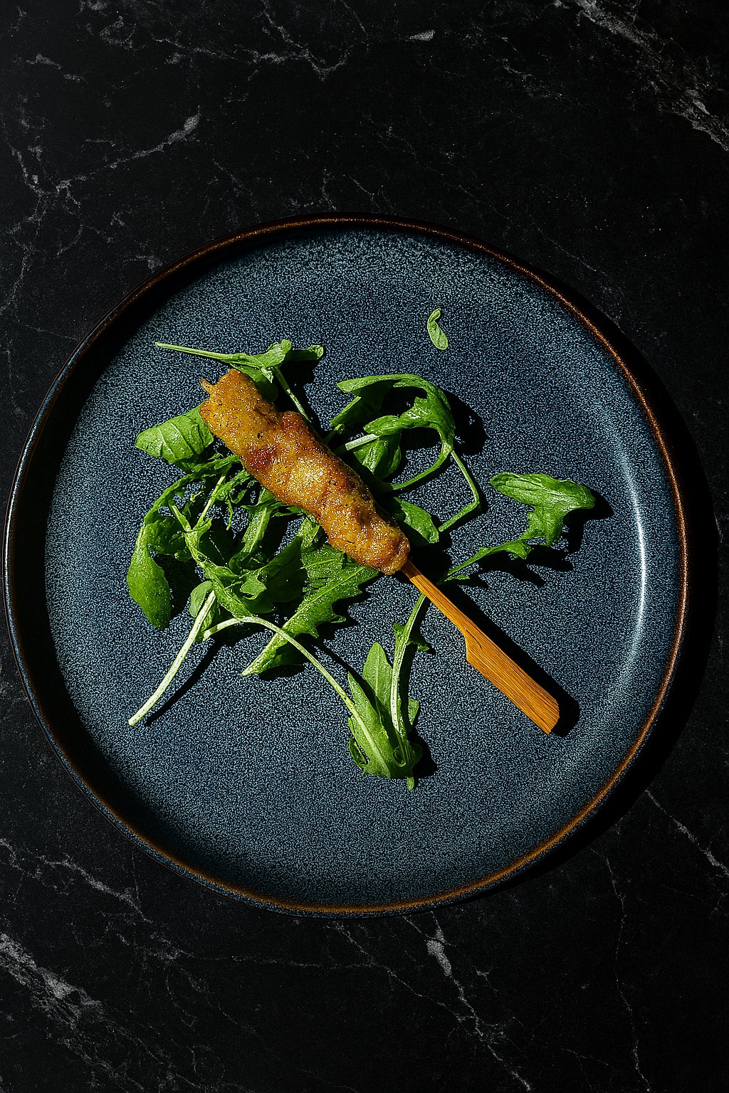 Gyoza med fyld af kylling og sæsonens grøntsager.