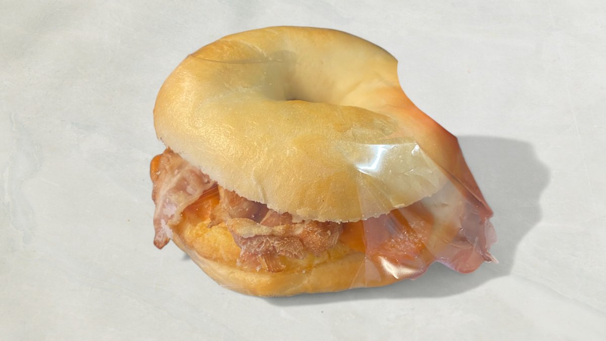 Breakfast bagel med æg, bacon, ost og dressing