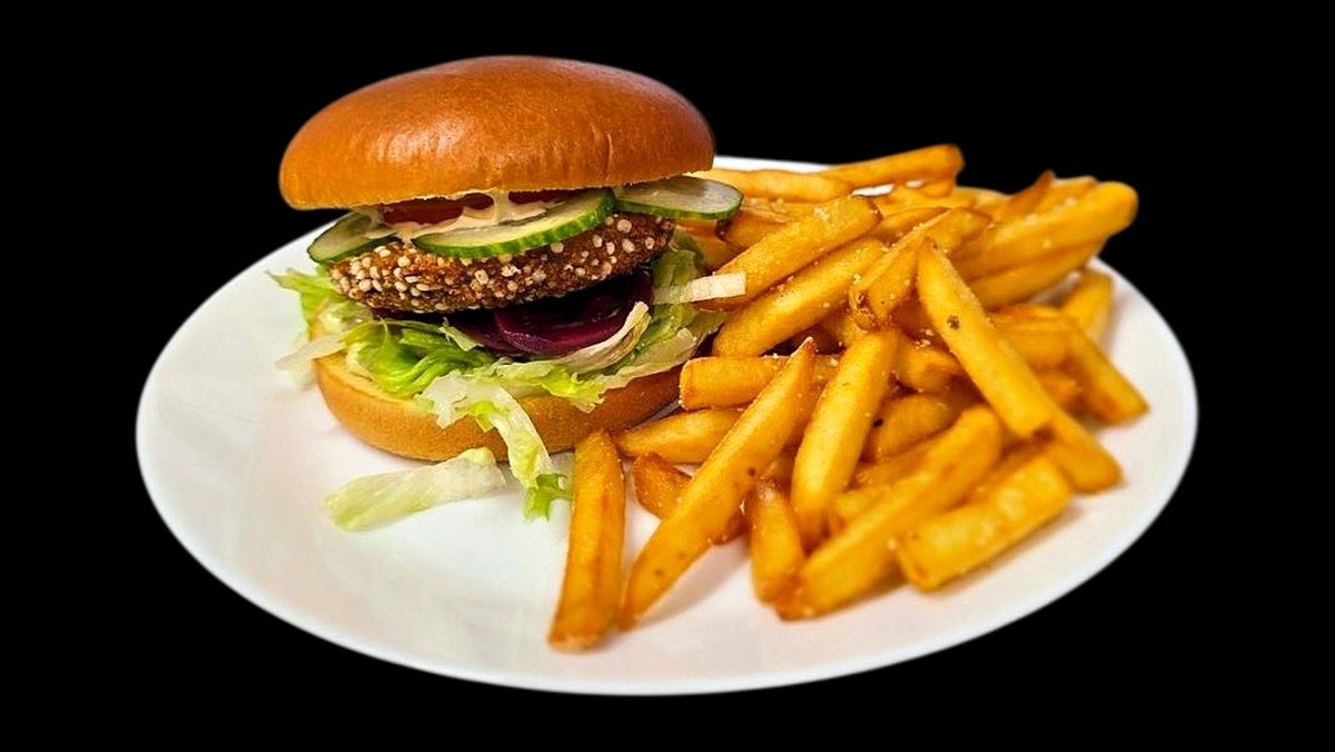 Vælg mellem 2 slags bøffer. Briochebolle, hjemmelavet avokadocreme, salat, syltet rødløg, bøf, agurk, tomat & aioli. Med Pommes Frites og valgfri sodavand.