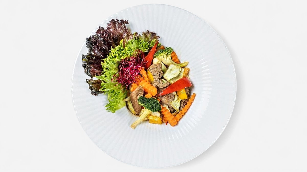 Frisk salat af oksekød, agurker, tomat, lime og chili. Serveret med ris.