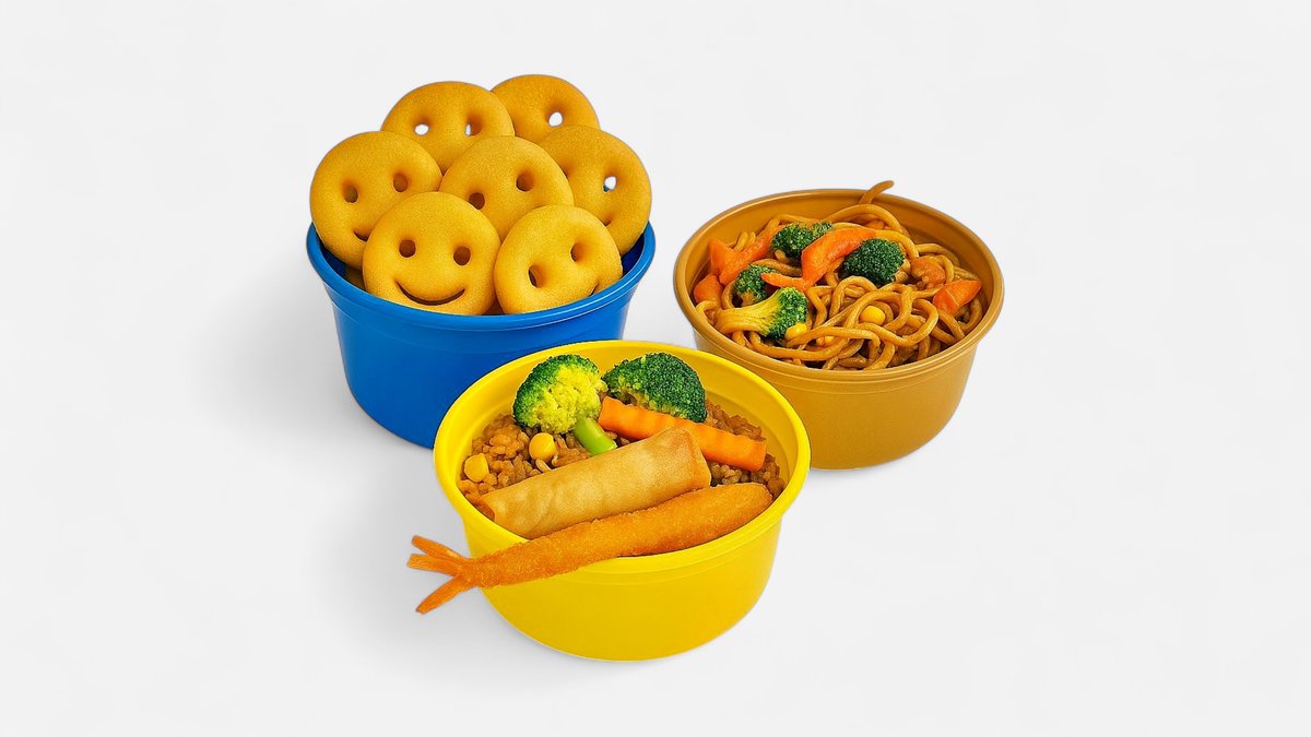 Vælg mellem stegte ris/nudler med æg + grøntsager eller 12 stk. Smiley pommes frites. Samt selvvalgt forret: 1 stk. kylling spyd, 2 stk. forårsruller eller 2 stk. crispy rejer