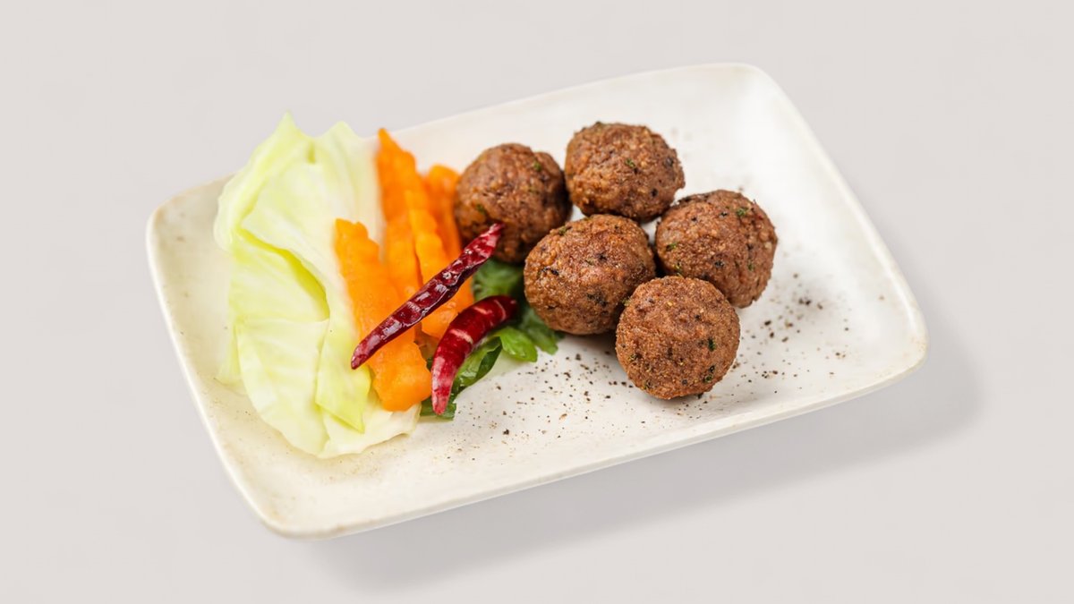 5 stk. Larb moo tod, Thailandsk friture spicy kødboller med svinekød, kaffir limeblade og thai kryderi.