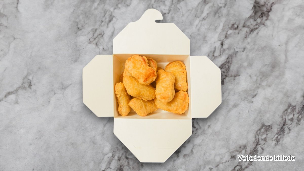 Fried Crunchy Chicken, brioche style bolle, hjemmelavede burgerdressing, salat, rødløg.