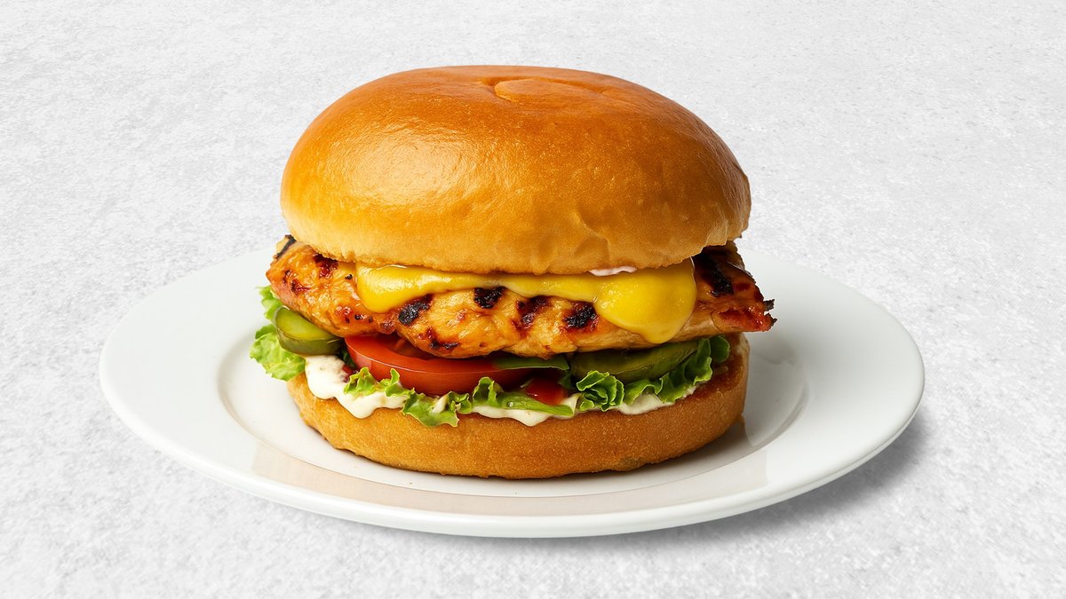 Med fyld af flammegrillet kyllingebryst, et stykke cheddarost, tomat, pickles, salat og vores hjemmelavede aioli.