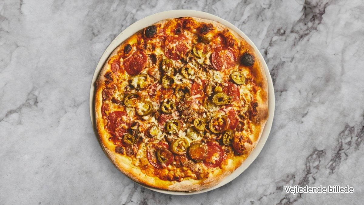 Tomat, ost, kebab, pepproni, jalapeno, chili