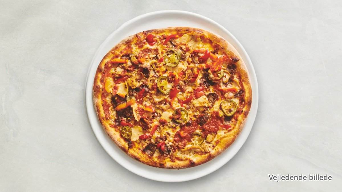 Tomat, ost, marineret kylling, peberfrugt, løg, jalapeno, chili