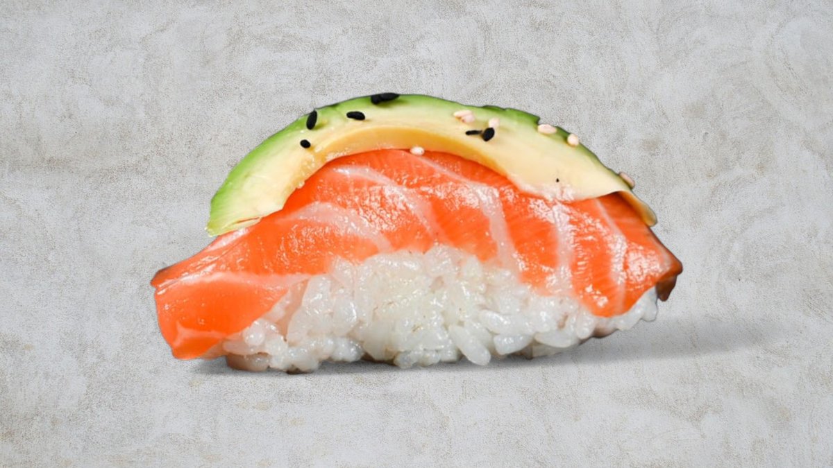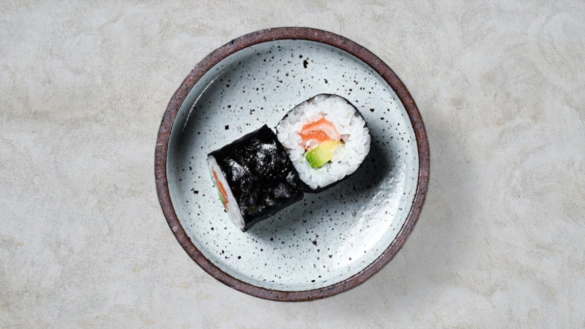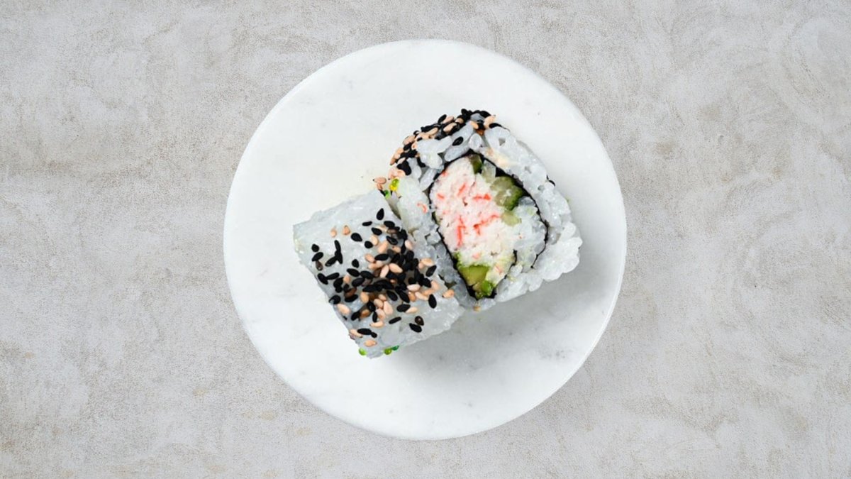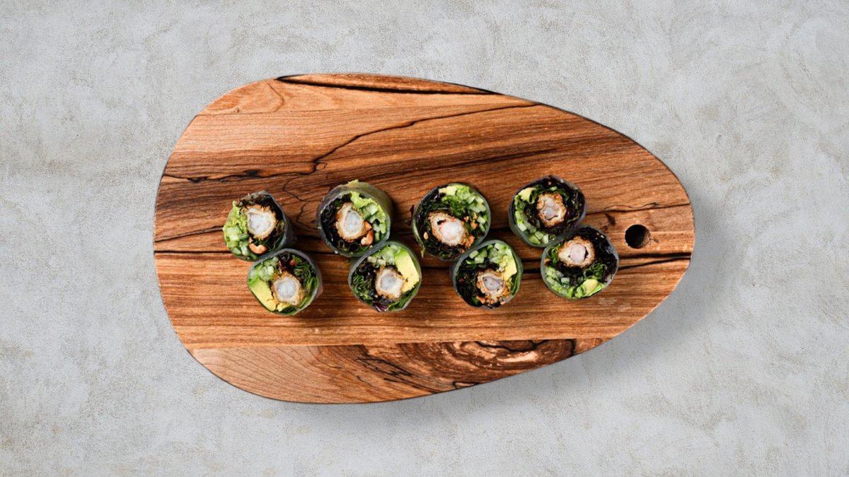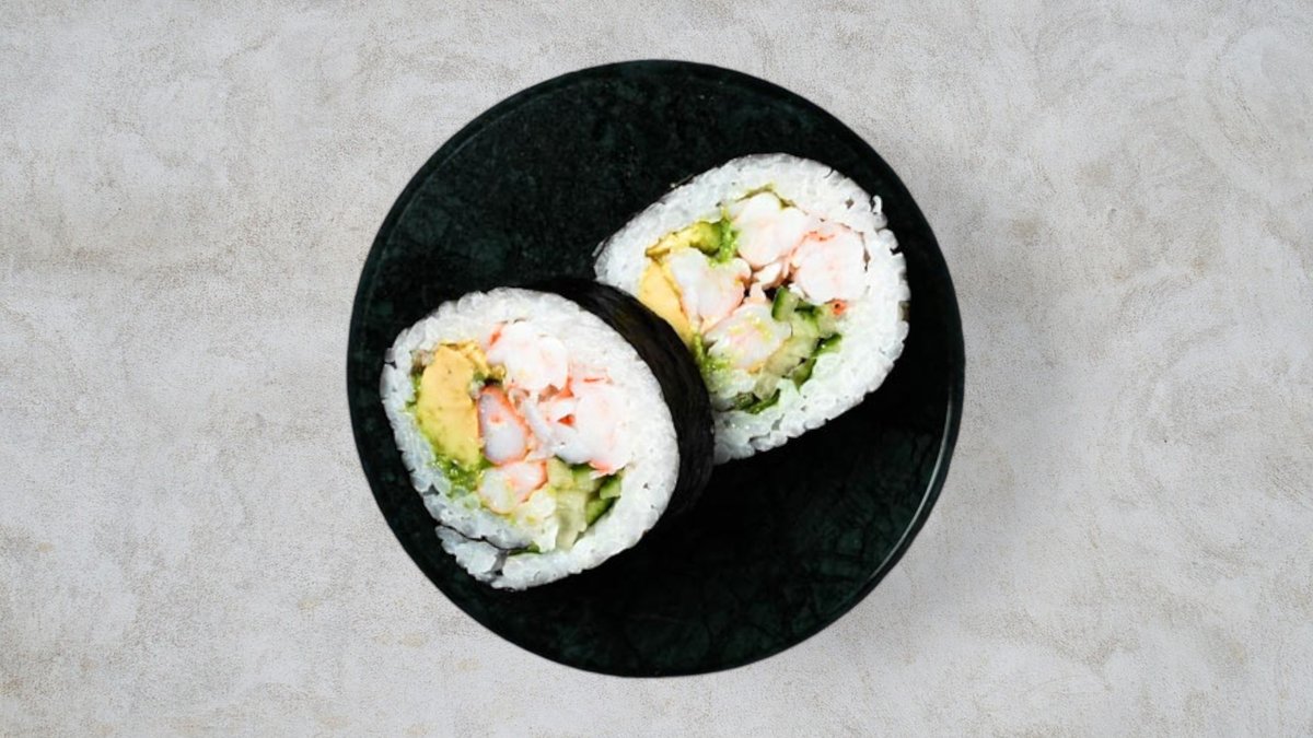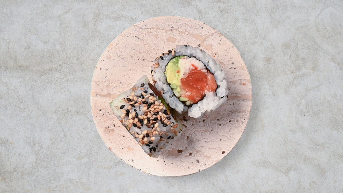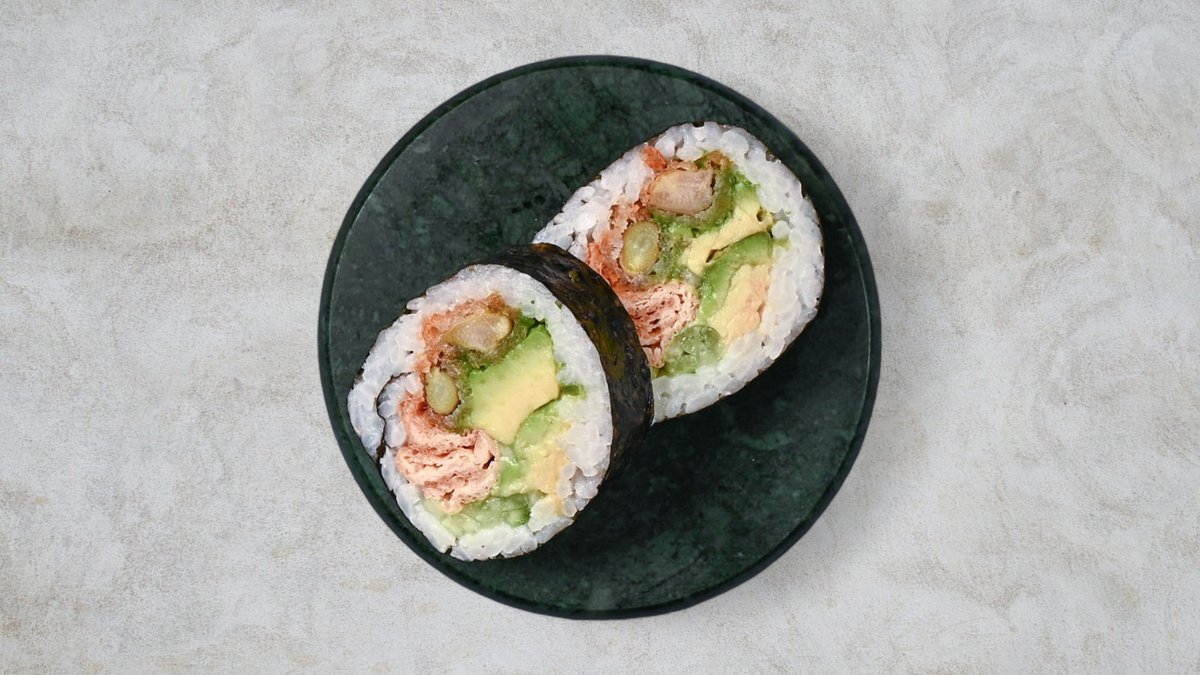 Op til 2 valgfrie protein protein, avocado, tangsalat, goma og sesam på sushi-ris.