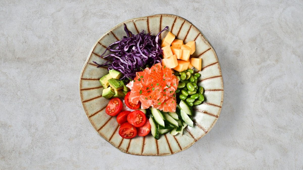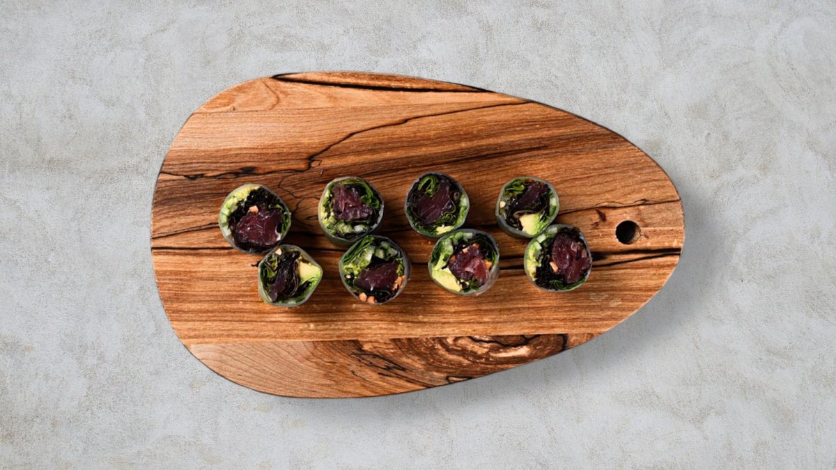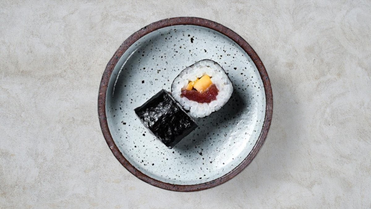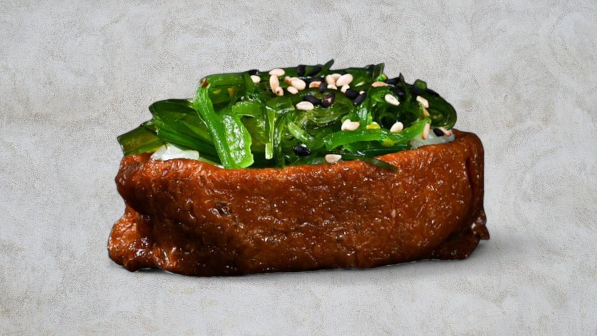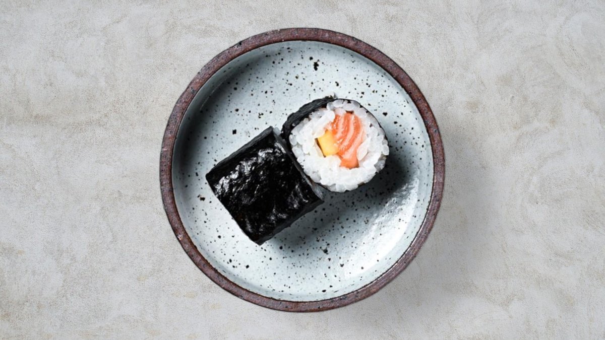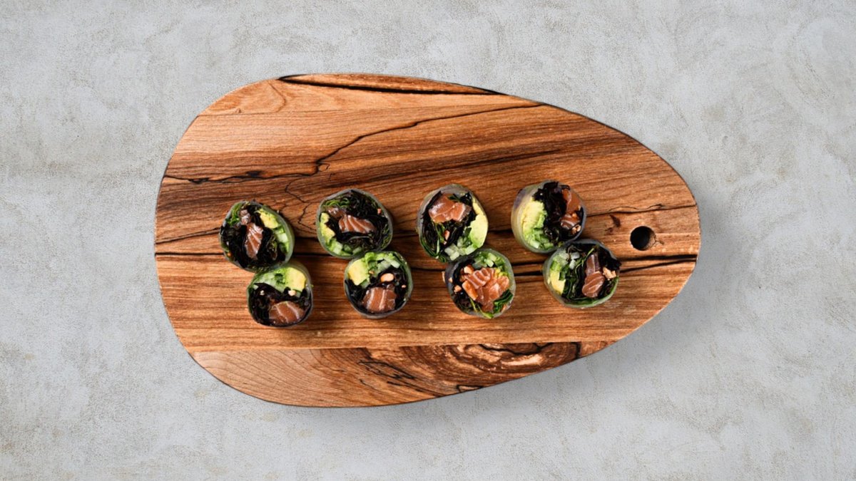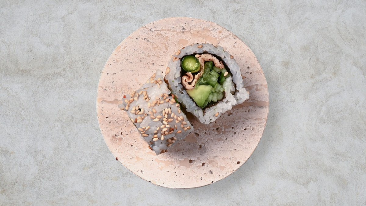 Op til 2 valgfrie protein protein, avocado, tangsalat, goma og sesam på sushi-ris.