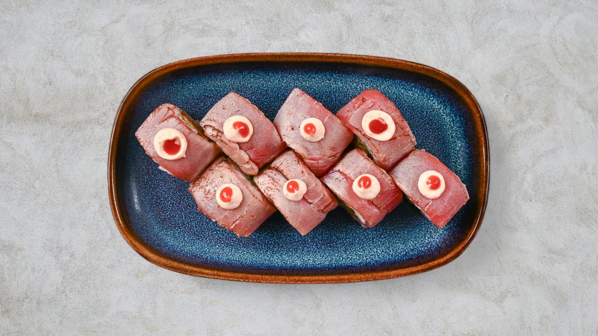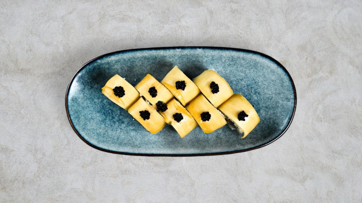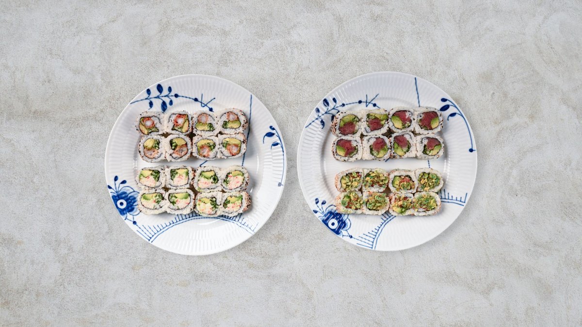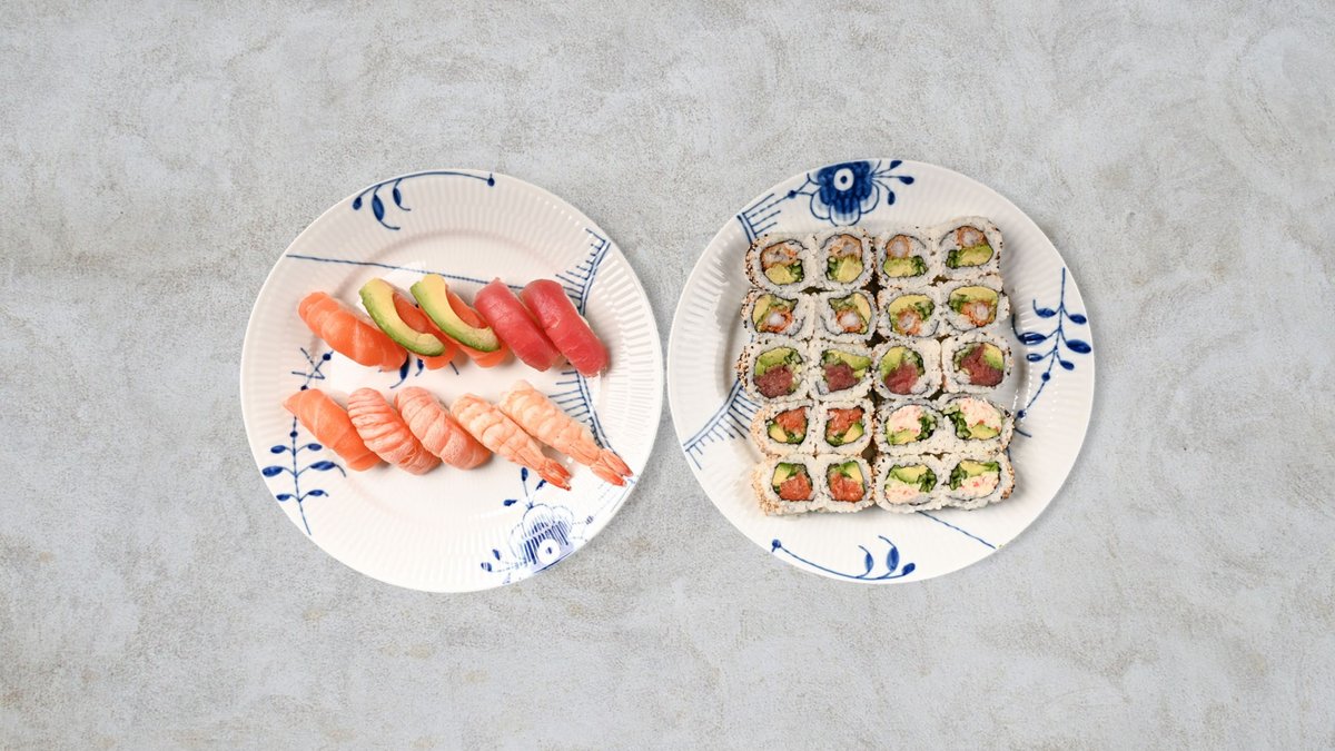 Kaburimaki: 8 x Crispy Beet Nigiri: 2 x laks 2 x tun 2 x laks flamberet med avocado og teriyaki 1 x tun med trøffel