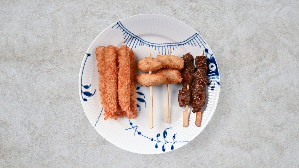 Sticks: 2 x oksekød 2 x Chicken Cheddar Serveret med 5 x tempura-ebi.