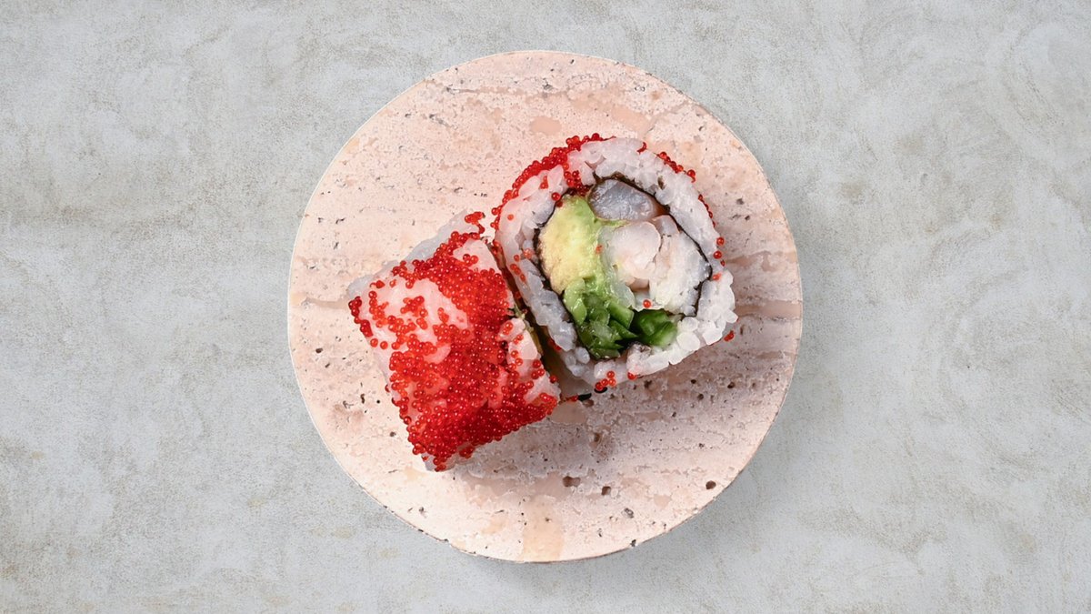 20 x uramaki efter kokkens valg og 10 x nigiri efter kokkens valg.