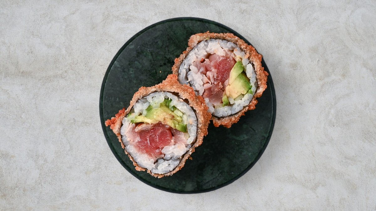 Tun, forårsløg, koriander og agurk dybstegt i sprød panko serveret med teriyakisauce.