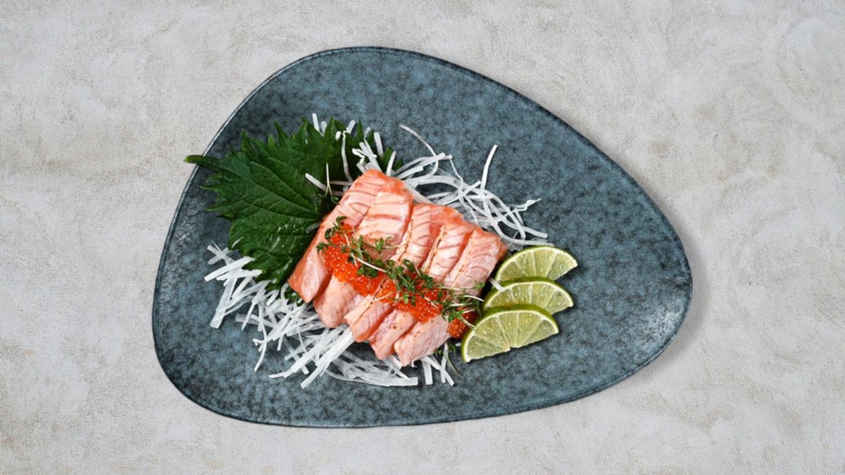 Laks, æbler, forårsløg, ørredrogn, flødeost, karse og wasabilime.