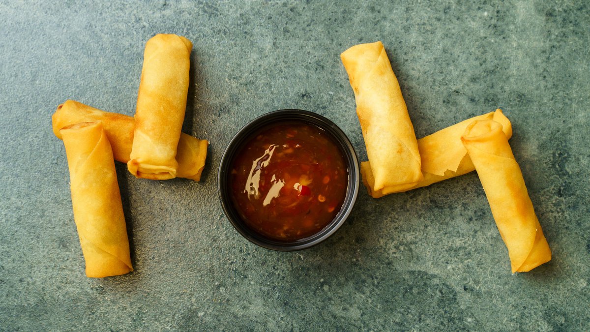 Serveres med sød chilisauce.