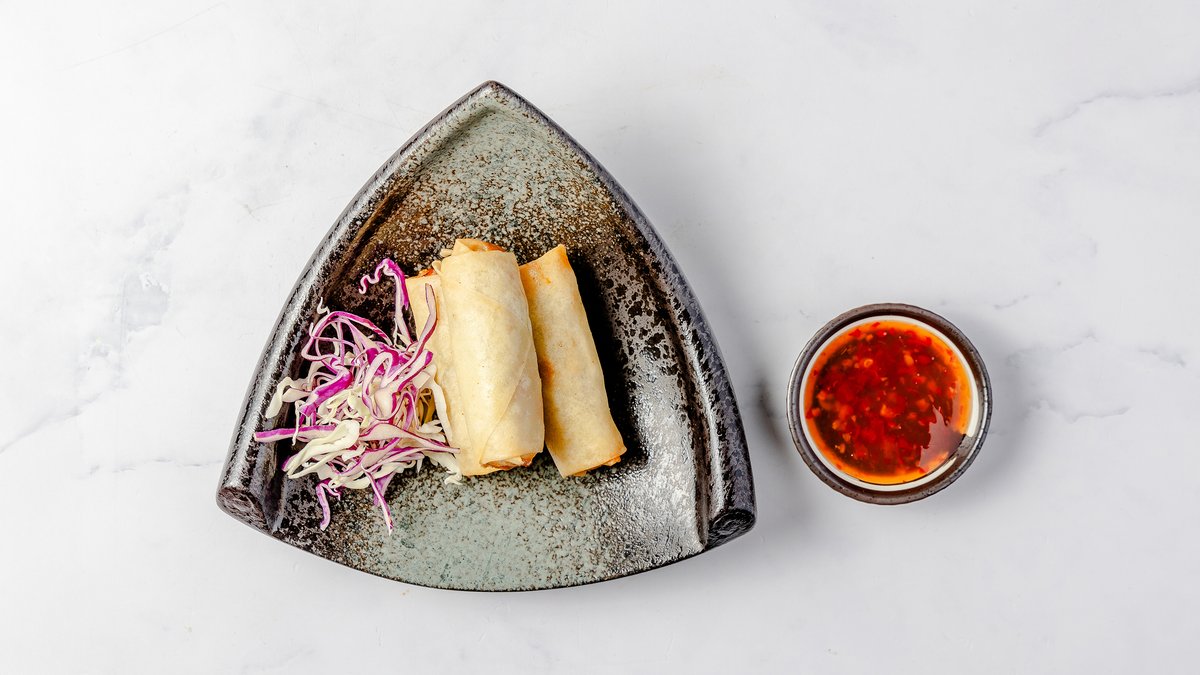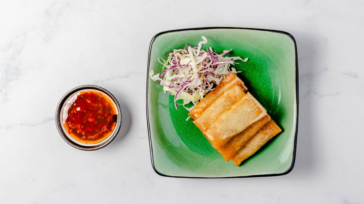 4 stk foråresruller med svinekød og grøntsager, servers med sød-chili sauce.