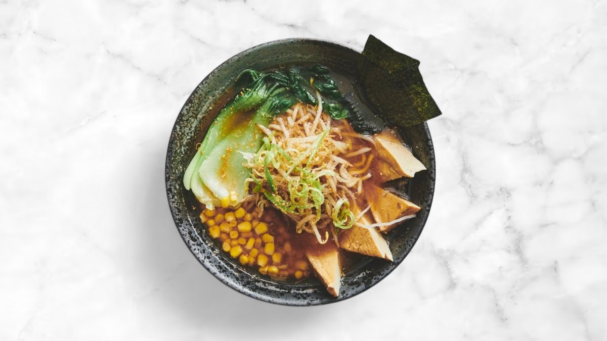 Ramen med Shio suppe. Toppet med marineret tofu og sæsonens grøntsager.