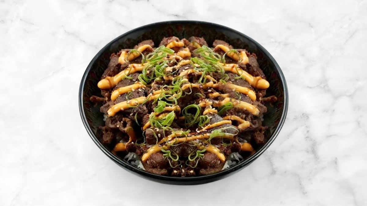 Oksekød, salat, rødkål, spicy mayo og teriyaki sauce.