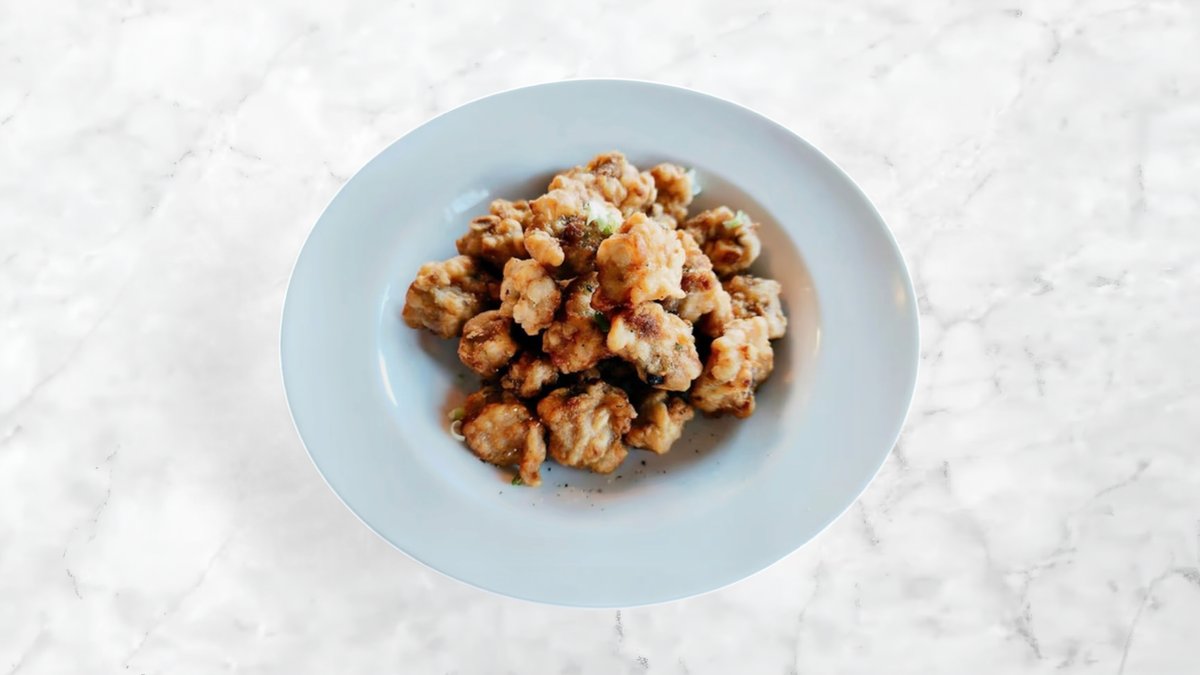 4 stk Kyllinge karrage, 4 stk fried wontons, 4 stk takoyaki, 4 stk veganske forårsruller, 2 stk tempura rejer, 3 dips(sød-chili , spicy mayo, puju sauce)