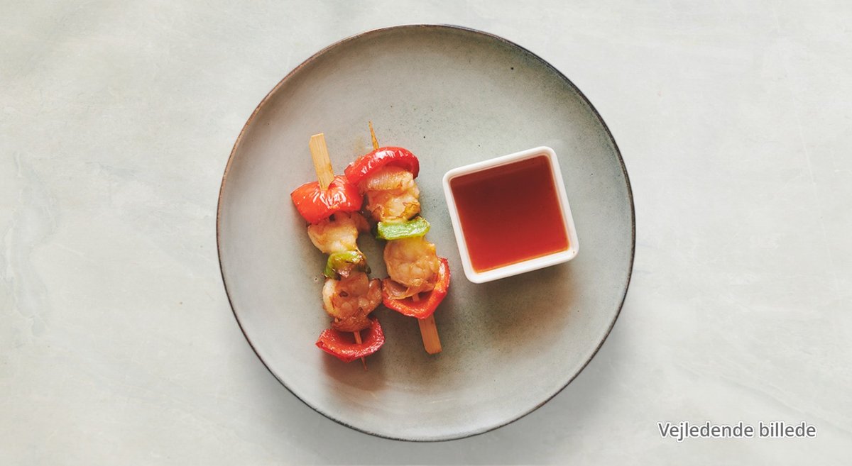 Andm chili, teriyakisauce, avocado, agurk og mix salat.