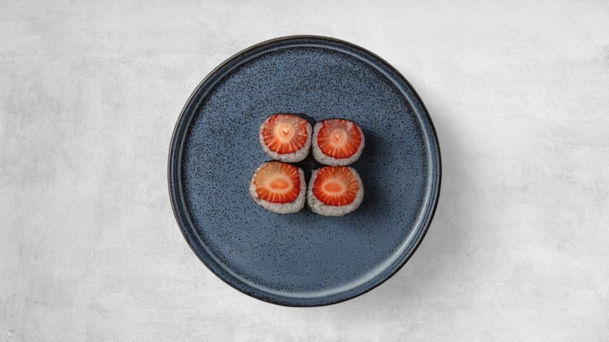 Makirulle omgivet af rispapir, delt i 6 ens skiver.