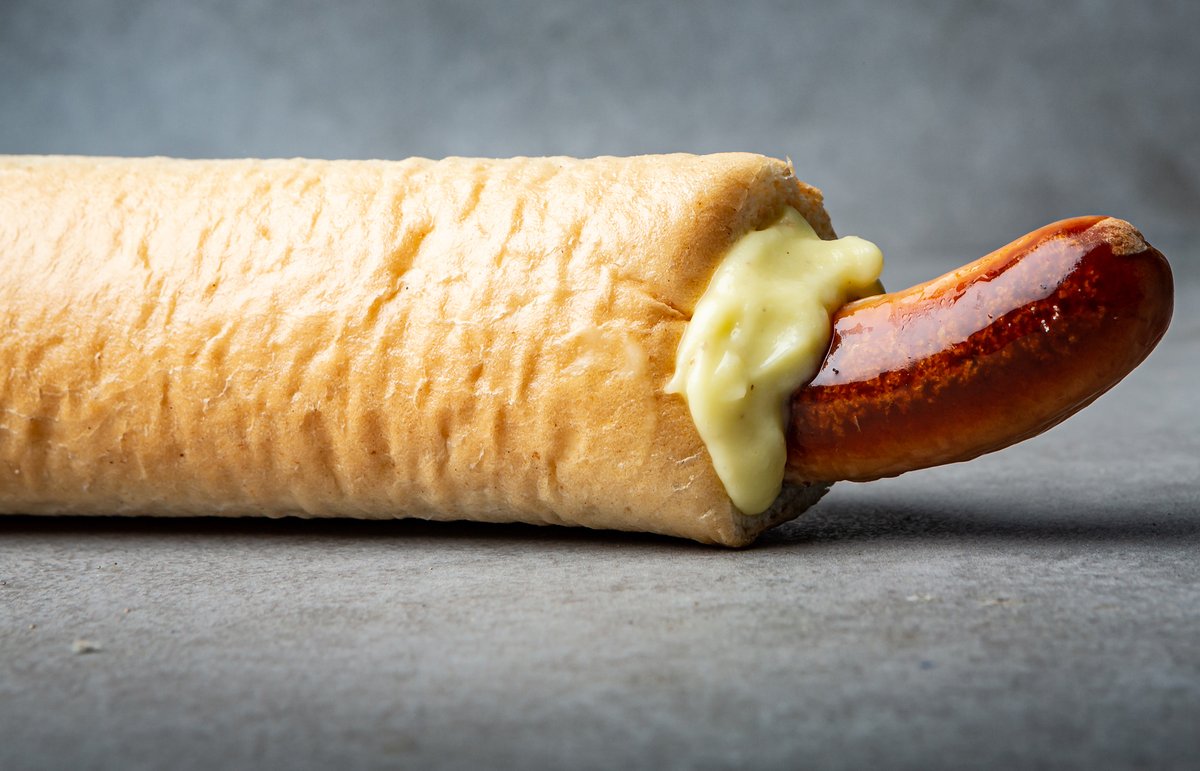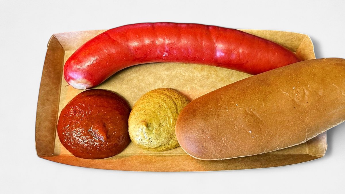 Rød knækpølse (150 gram) STOR PØLSE med brød