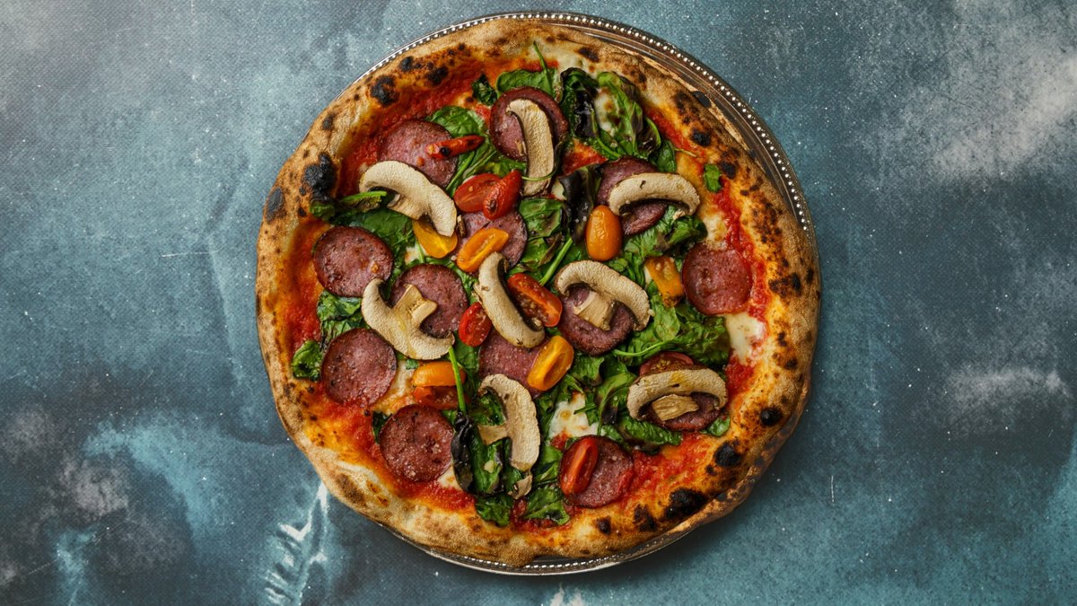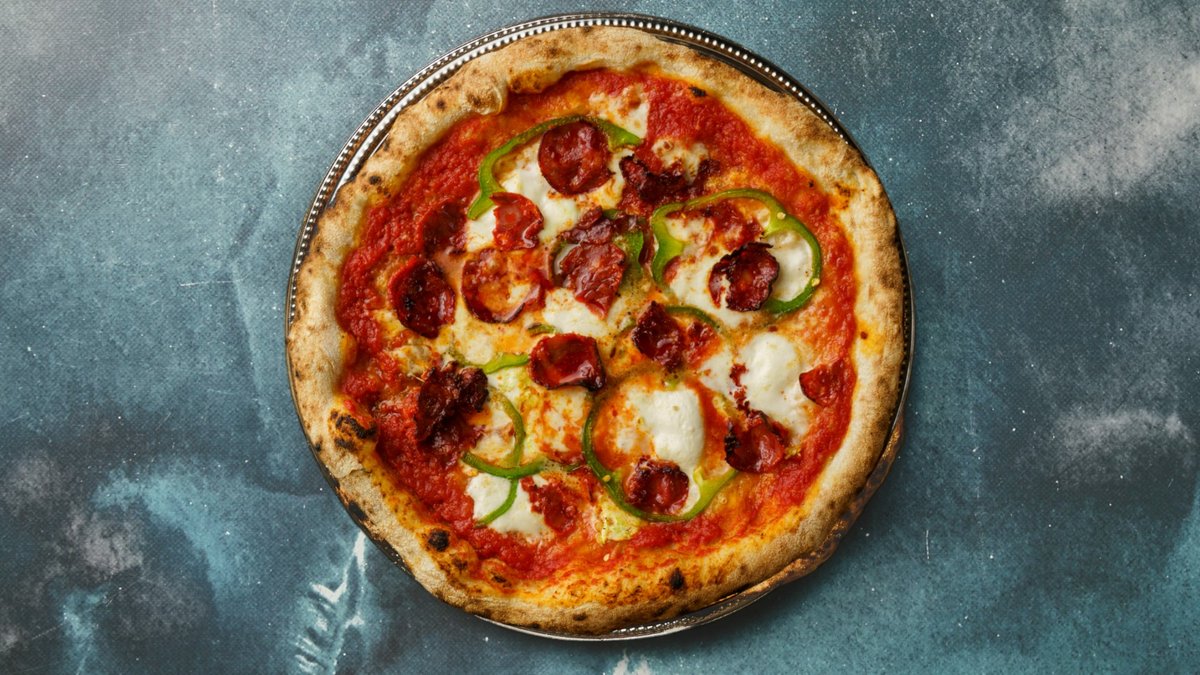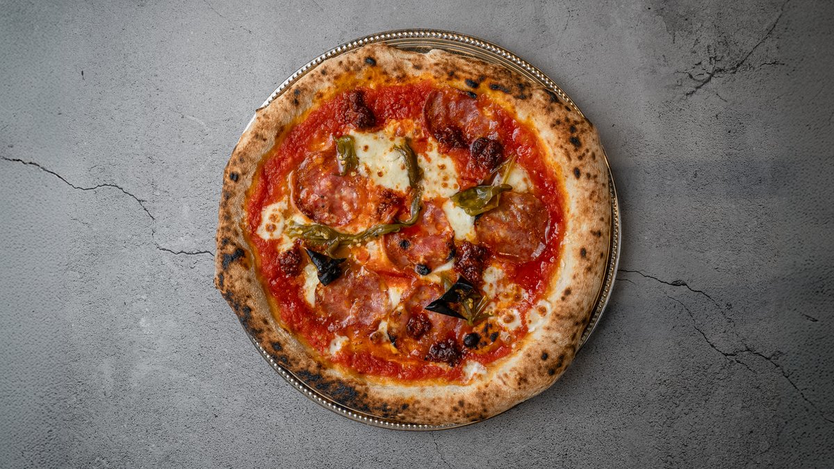 Tomatsauce, mozzarella, iberico chorizo, mozzarella di bufala, tørret chili og frisk oregano