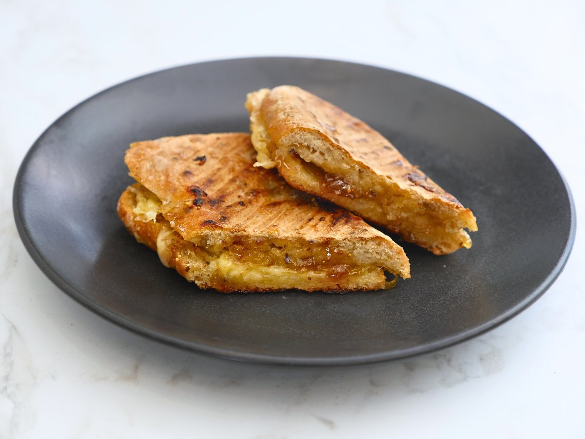 Øko ciabatta toast med lagret ost og figenmarmelade.