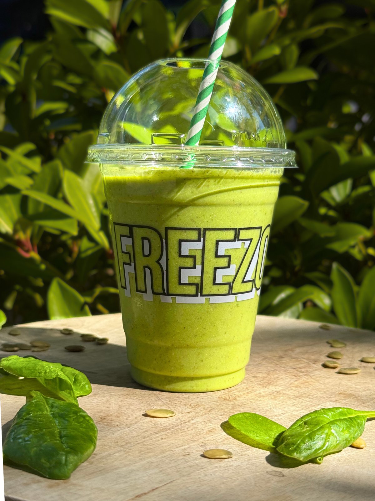 Frisk, let og fuld af øko og grøn energi: spinat fyldt med A-, C- og K-vitaminer, sød mango rig på C-vitamin, cremet banan med naturlig kalium, og vores chia–havremælksbase for ekstra fibre. Toppet med blendede græskarkerner — en naturlig kilde til magnesium og et splash citron for friskhed. En lys, vitaminrig smoothie, der giver dig et naturligt glow hele dagen.